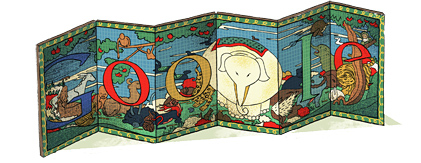 Googleのロゴ フロンティアビジョン 2012.02.09 #日々の出来事 昨日、Googleのロゴが鳥獣花木図屏風でした。伊藤若冲さんの誕生日だったそうです。 誕生日だと知ると、昔 本当に伊藤若冲さんが生きてたんだなと一気に実感が増します。 鳥獣花木図屏風は、8万6千個ものマス目に色を塗って描かれていて、なんと、光の当たり方で鳥の色が変わっていくそうです!ぜひ実際に見てみたいです…!