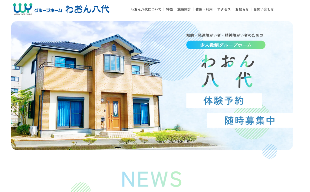 熊本県八代市にある少人数制グループホーム「わおん八代」様のホームページを制作いたしました。