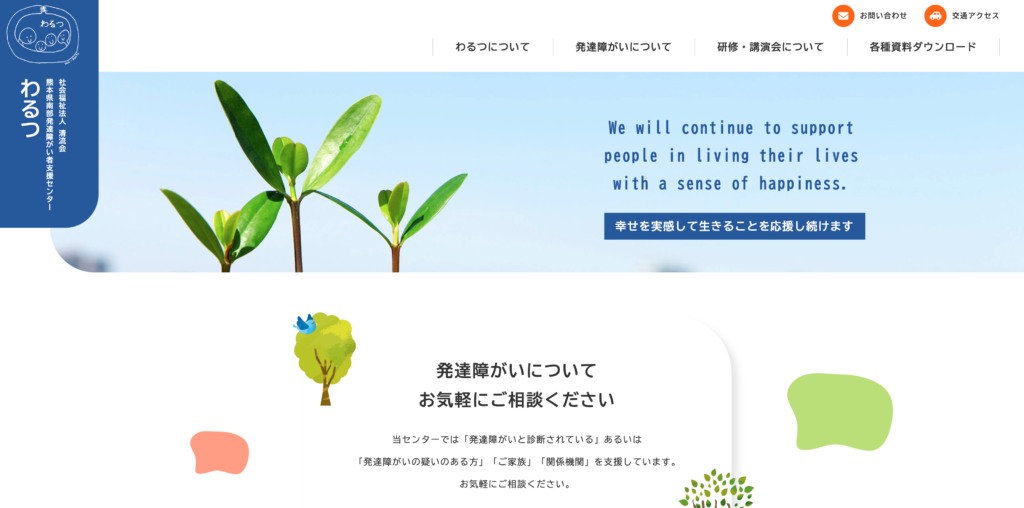 アルサーガ熊本のホームページ制作実績:「熊本県南部発達障がい者支援センター わるつ様」