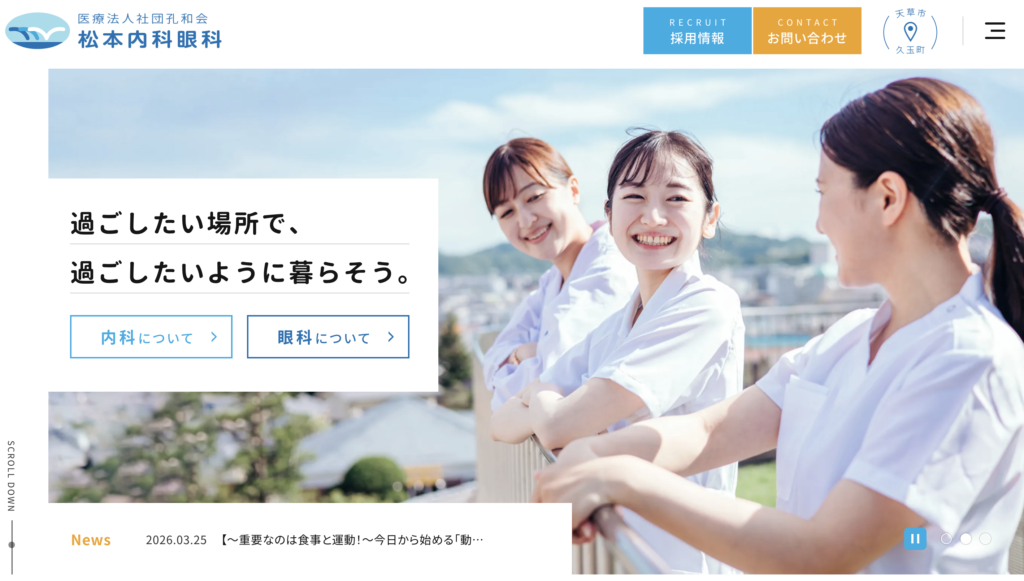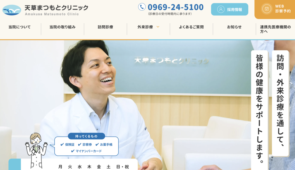 熊本県天草市に2025年9月開院の天草まつもとクリニック様のホームページを制作させていただきました。
