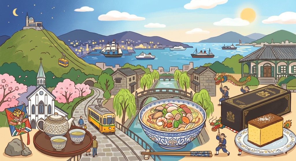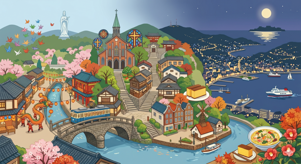 長崎市は、古くから出島を通じて外来文化を受け入れてきた歴史を持つ県庁所在地であり、和・華・蘭(日本・中国・オランダ)が融合した独自の文化が息づく、異国情緒あふれる都市です。