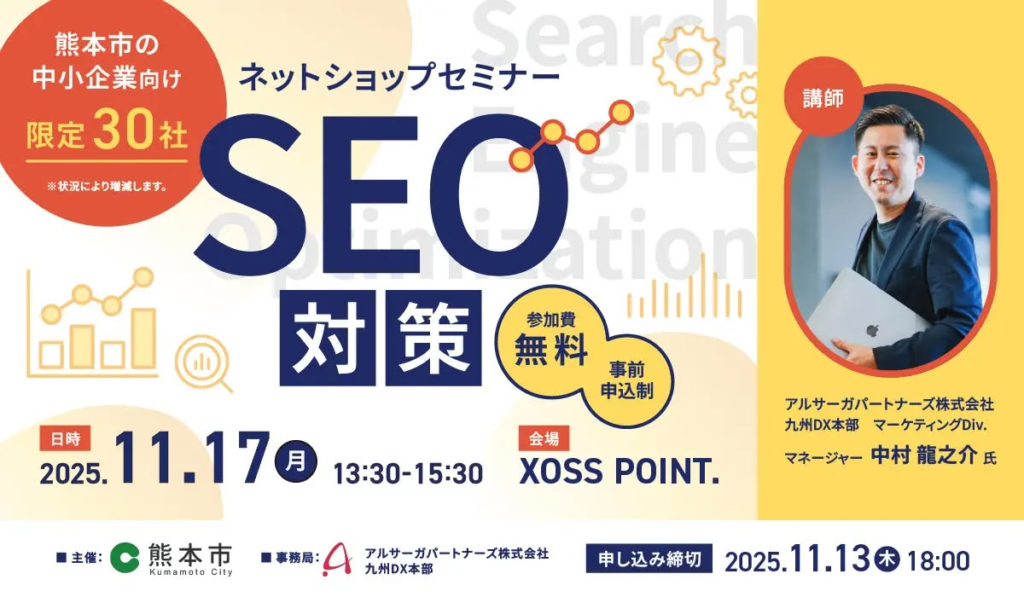 【11/17(月)開催】熊本市主催『ネットショップセミナー “SEO対策”』参加者募集のお知らせ