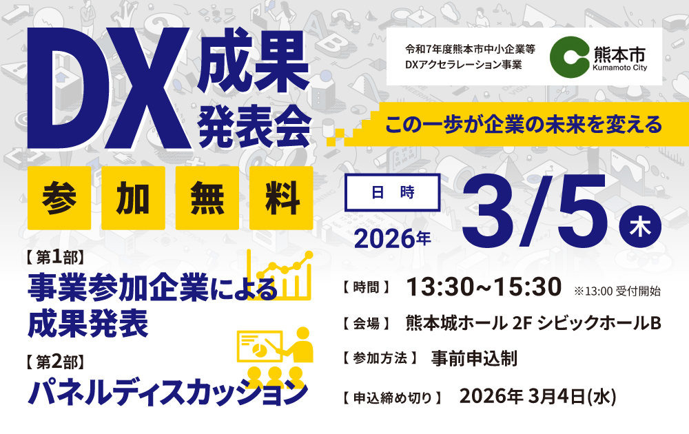 | イベント名 | 令和7年度 熊本市中小企業等 DXアクセラレーション事業 成果発表会 |