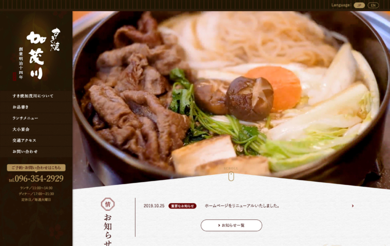 創業明治十四年の歴史を誇る、すき焼・しゃぶしゃぶの老舗、すき焼加茂川様のWebサイト。明治以来の永い歴史に培われた専門店としての経験、厳選された素材。「肉の名門」の名に恥じぬ味と雰囲気は、食通を自認される方々にもきっと心ゆくまで、ご満足いただけることでしょう。