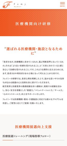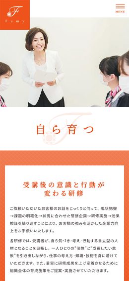 コミュニケーション指導や人材育成のコンサルティングを手がける「Famy」様のホームページを作成いたしました。