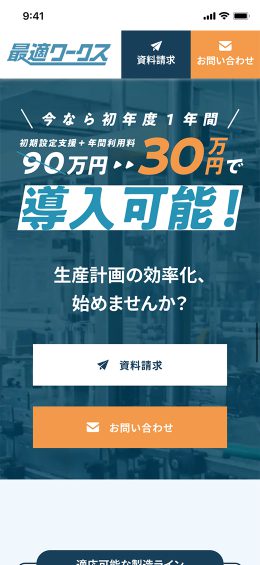 最適ワークスとは月額5万円から使える「オーダー情報を入れるだけ」「複雑な工程管理にも柔軟に対応」「月額5万円〜導入可能」と3拍子揃ったAI生産スケジューラです。