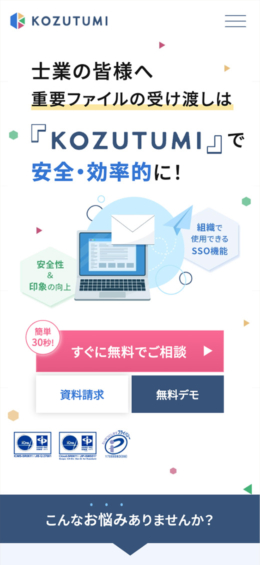 株式会社ハートビーツ様のファイル転送サービス「KOZUTUMI」のランディングページを制作いたしました。