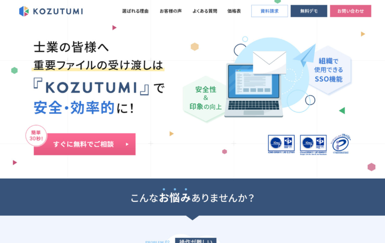重要なファイルの受け渡しは「KOZUTUMI」で安全・効率的に!