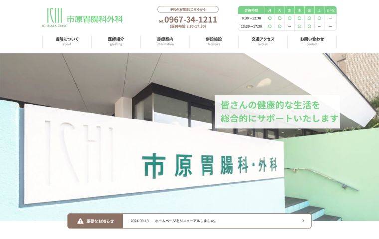 熊本県阿蘇市黒川にあります「市原胃腸科外科」様のホームページをリニューアルさせていただきました。