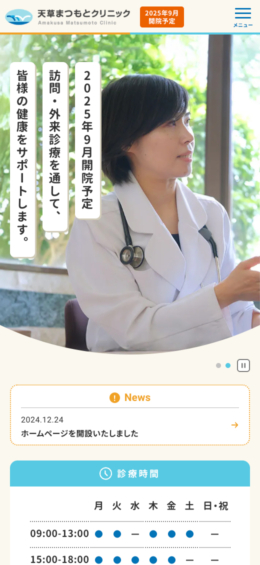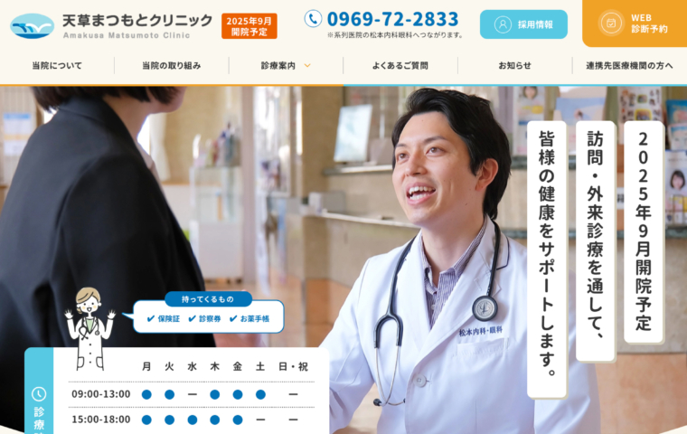 熊本県天草市に2025年9月開院予定の天草まつもとクリニック様のホームページを制作させていただきました。